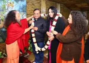 स्वामी जी और साध्वी जी ने माननीय मुख्यमंत्री असम श्री हेमन्त बिश्वा सरमा जी और उनकी धर्मपत्नी रिनिकी भूया सरमा जी को रूद्राक्ष की दिव्य माला, रूद्राक्ष का पौधा और श्री गणेश जी की प्रतिमा और परमार्थ निकेतन का सद्साहित्य किया भेंट।