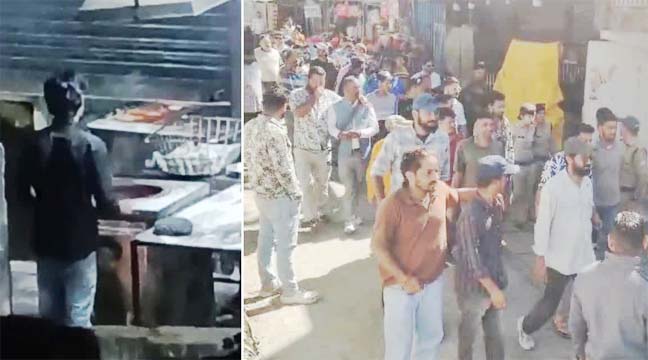 उत्तरकाशी, 16 अक्टूबर। उत्तराखंड का उत्तरकाशी जिला एक बार फिर चर्चाओं में है. हिंदू संगठनों ने एक बार फिर से शहर में विरोध प्रदर्शन किया है. आरोप है कि शहर के एक रेस्टोरेंट में खाने को दूषित किया गया है, जिसको लेकर हिंदू संगठन से जुड़े युवाओं ने बाजार में दुकानें बंद कराई और प्रदर्शन किया. खाने को दूषित करने का वीडियो भी सामने आया है, जिसके बाद इस मामले पर और ज्यादा हंगामा हो गया.