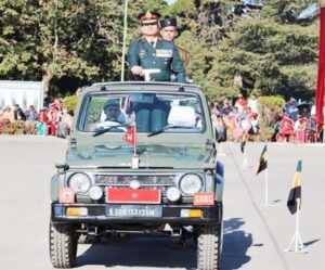 समीक्षा अधिकारी ब्रिगेडियर विनोद सिंह नेगी, विशिष्ट सेवा मेडल, कमांडेंट, गढ़वाल राईफल्स रेजिमेंटल केंद्र लैंसडाउन ने पासिंग आउट परेड की सलामी लेने के बाद परेड का निरीक्षण किया।