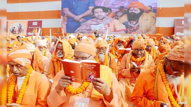 कोलकाता, 7 दिसम्बर। पश्चिम बंगाल की राजधानी कोलकाता में आज हिंदुओं के आध्यात्मिक जागरण के लिए भगवद् गीता का पाठ का आयोजन किया गया, जिसमें करीब पांच लाख श्रद्धालुओं के शामिल होने का दावा है. गीता पाठ में पश्चिम बंगाल के राज्यपाल सीवी आनंद बोस, योग गुरु बाबा रामदेव और धार्मिक गुरु धीरेन्द्र शास्त्री भी शामिल हुए. साथ ही अन्य साधु-संत भी गीता पाठ के लिए कोलकाता के ब्रिगेड परेड ग्राउंड में पहुंचे. हालांकि इस आयोजन की टाइमिंग को लेकर सवाल उठ रहे हैं. एक दिन पहले ही मुर्शिदाबाद के बेलडांगा में अयोध्या की बाबरी मस्जिद के मॉडल पर आधारित एक मस्जिद की नींव रखी गई थी.