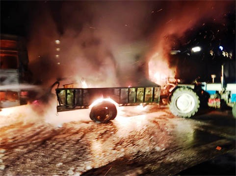 सूचना मिलते ही फायर ब्रिगेड और पुलिस टीम मौके पर पहुंची और आग पर काबू पाने का प्रयास किया। इस दौरान हाईवे पर जाम लग गया। जानकारी के मुताबिक, रायवाला से हरिद्वार की ओर जाने वाली लेन पर आगे चल रही एक कार चालक ने अचानक ब्रेक लगा दिया। जिससे उसके पीछे चल रहा ट्रैक्टर कार से टकरा गया। इसके बाद ट्रैक्टर को भी एक ट्रक ने पीछे से जोरदार टक्कर मार दी। हादसे में कार में भीषण आग लग गई। बताया जा रहा है कि कार सवार दो लोग जिंदा जल गए हैं जिनमे एक महिला और बच्चा शामिल है। ट्रक में करीब 32 लोग सवार थे, जो छिटक कर इधर उधर गिर गए। वहीं, घायलों को हरिद्वार अस्पताल भेजा गया है।