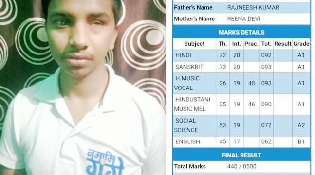 स्वामी अजरानंद हाईस्कूल भूपतवाला के छात्र शिवांश ने कुल 500 में से 440 अंक प्राप्त कर प्रथम श्रेणी में सफलता हासिल की। उनके परीक्षा परिणाम में हिंदी, संस्कृत एवं संगीत विषयों में उत्कृष्ट प्रदर्शन विशेष रूप से उल्लेखनीय रहा, जहां उन्होंने ए-वन ग्रेड प्राप्त कर अपनी प्रतिभा का प्रभावशाली परिचय दिया।